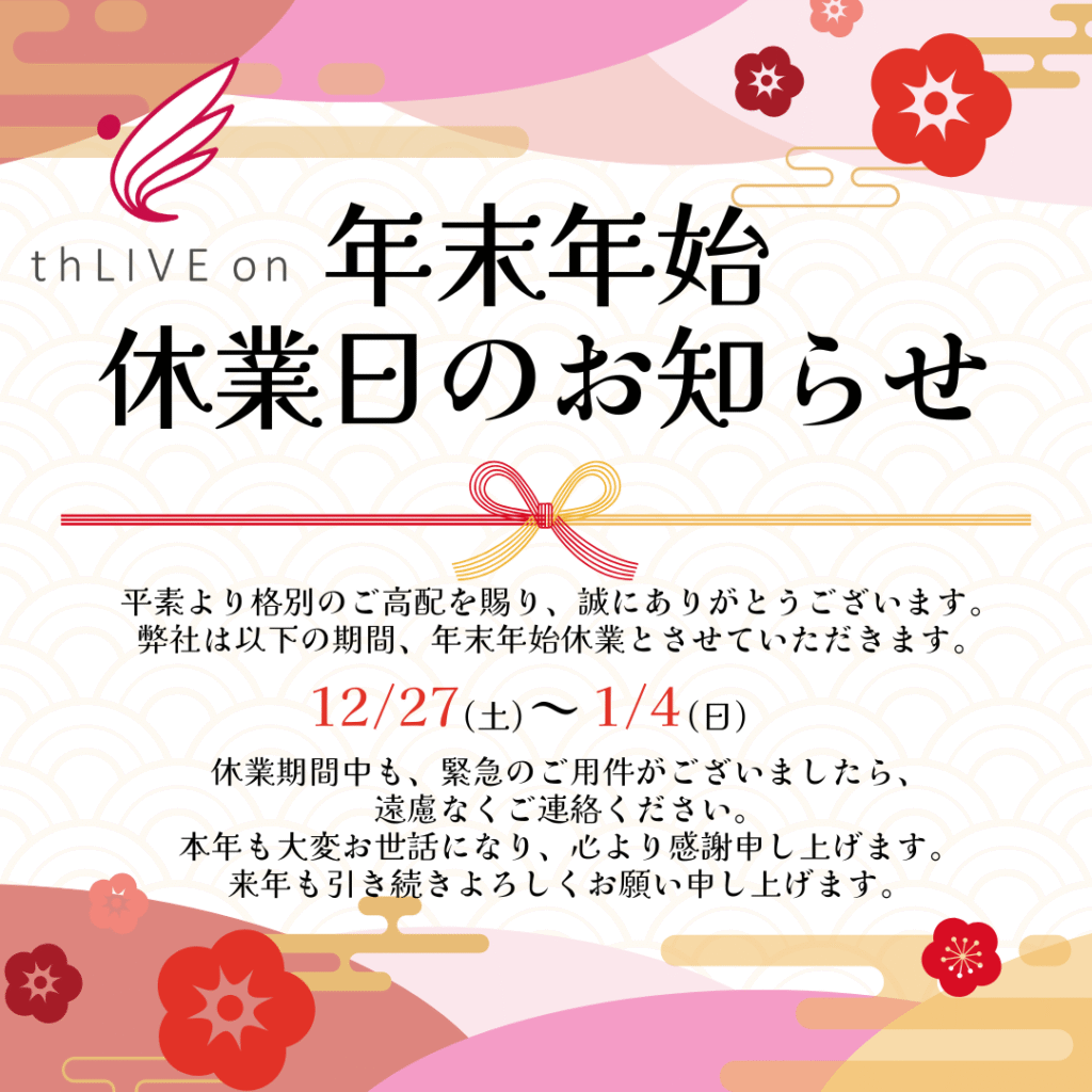 年末年始休業日のお知らせ 平素より格別のご高配を賜り、誠にありがとうございます… -