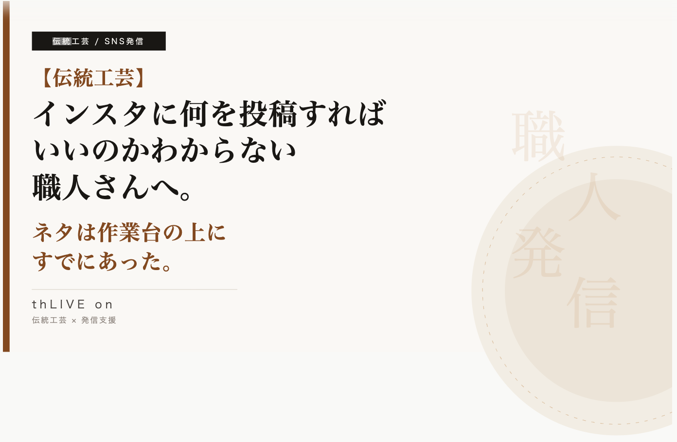 伝統工芸の職人さんと話すと、SNSの話題になったとき、ほぼ必ずこの言葉が出てきます。手は動いている。仕事は続けている。でも発信だけが、どうしても前に進まない。