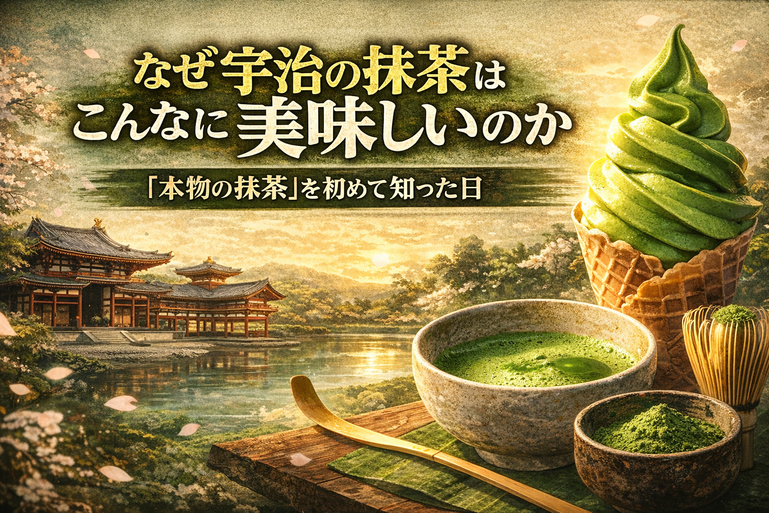 これまで、抹茶を「苦くて美味しくない」という印象を持っていた私。しかし、京都の宇治にある平等院鳳凰堂の前で口にした抹茶ソフトクリームは、まったく違う味わいでした。
